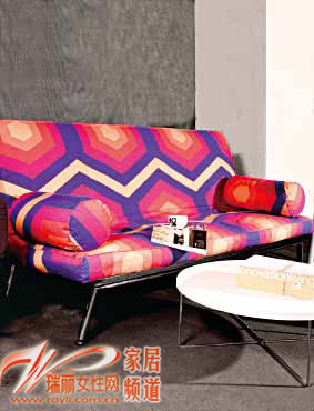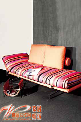 橙色彩條帶來時尚感覺,配以鋁合金支腿,更為現代、利落。這款三折沙發床小巧、簡潔,兩側均可收起,非常適合小空間使用。